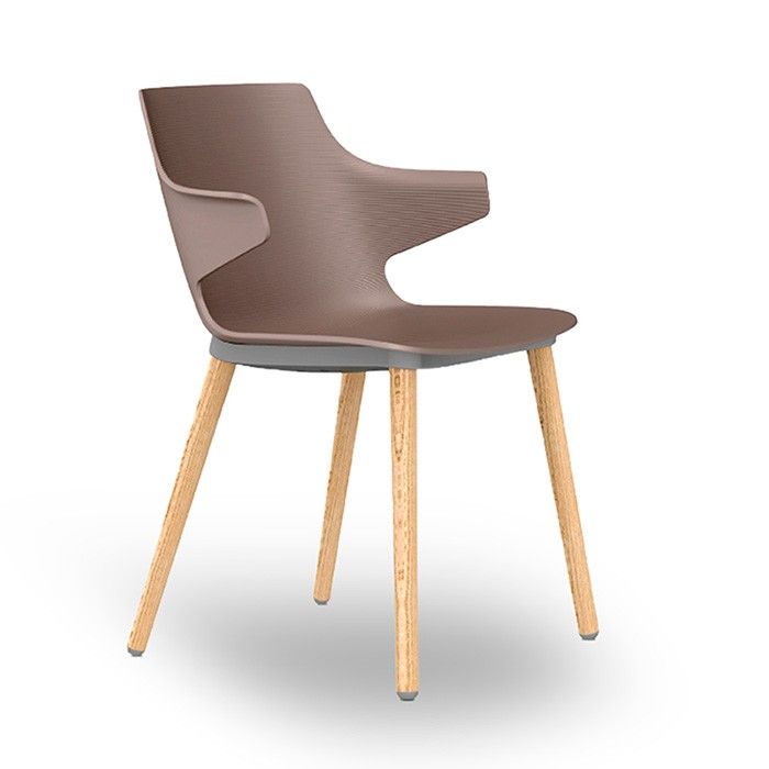 Indoor armchair featuring a seat frame and leg structure made from injected polypropylene and fiberglass, complemented by wooden legs. It includes a clip-on assembly system and UV protection.