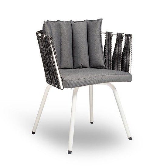 Individual seat with a lacquered aluminum structure, featuring cushions and upholstery designed for outdoor use. The seat has a braided ribbon backing on aluminum tubing. It comes in a wide range of colors and combinations, with optional cushions available. Ideal for outdoor settings.