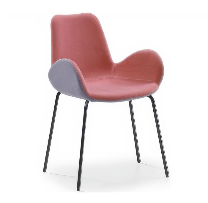 Dalia armchair with a low backrest and a four-leg base in lacquered or chrome metal, featuring a shell upholstered in leather, faux leather, or fabric.