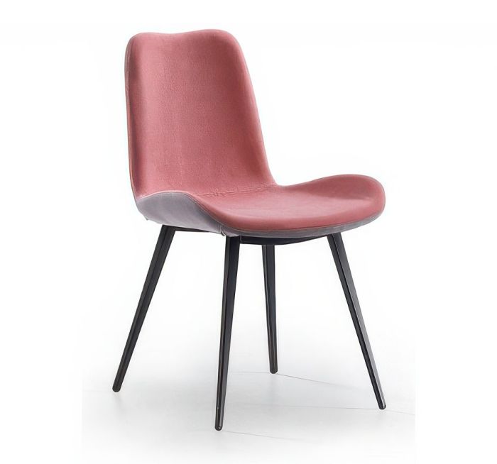 Dalia chair with a four-leg base in lacquered metal offers seating upholstered in leather, faux leather, or fabric. The backrest can be customized with different materials and colors on the front and back.