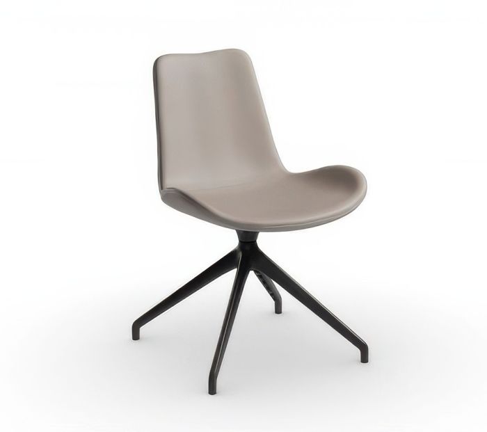 Dalia swivel chair with a metal trestle base and self-return mechanism, featuring a seat upholstered in fabric, leather, or faux leather.