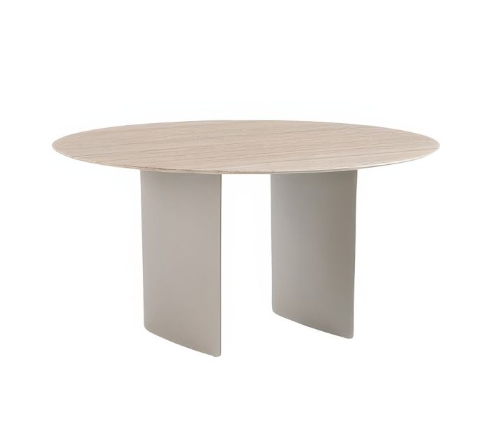 The table, fixed in place and covered with foil, has a diameter of 150 cm.
