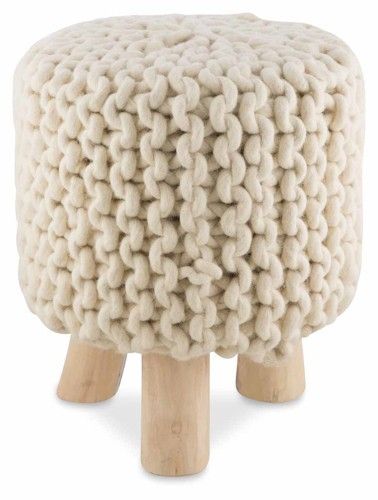 Kingsley Handwoven Wool Ottoman with Natural Wood Legs