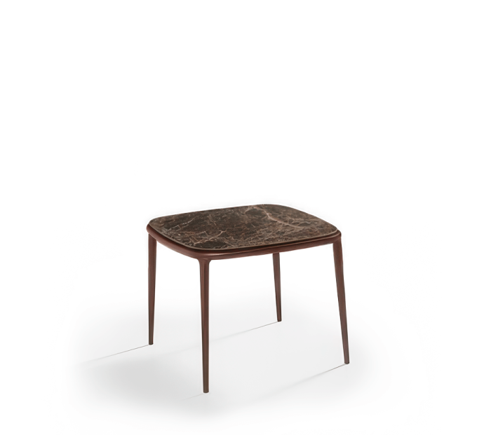 Lea coffee table with a four-legged lacquered metal base, available with a wood or ceramic top.