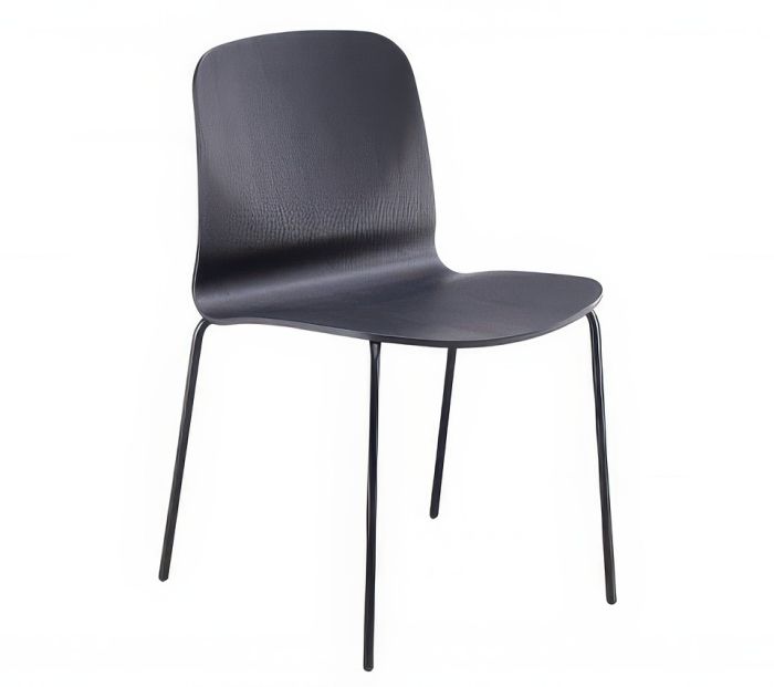Liù chair with a four-leg base in lacquered metal and a wooden shell.