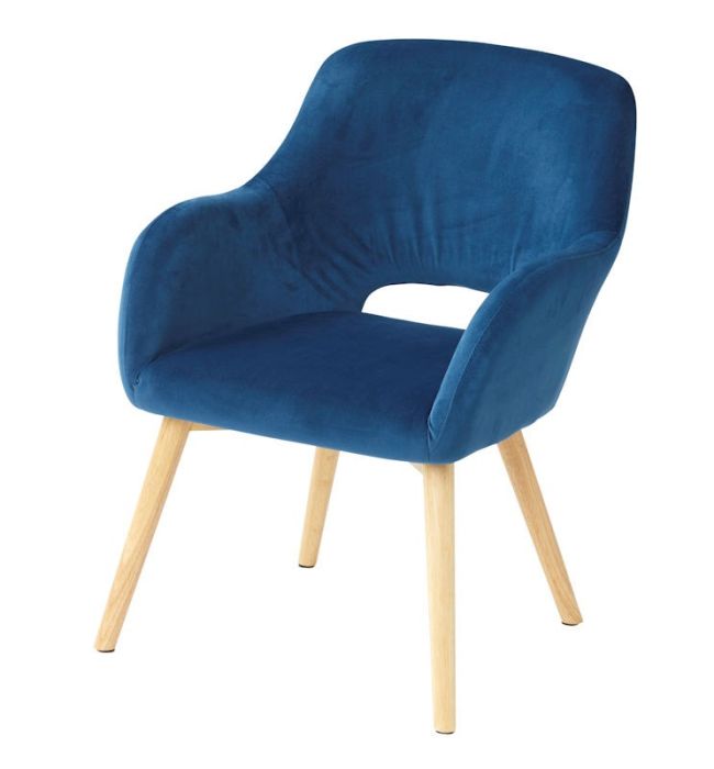 Luca Arm Chair is an iteration of the Marlo. It features an upholstered frame with a cutout back and four wooden legs. Perfect for use in hotels and restaurants.