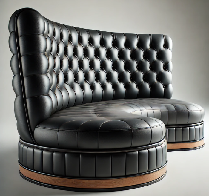 The Monaco Curve Banquette is characterised by its refined button tufting and flowing silhouette, offering a sophisticated seating solution for commercial spaces. Upholstered in durable black vinyl, it combines comfort with a bold aesthetic, ideal for restaurants, hotel lounges, and upscale venues.