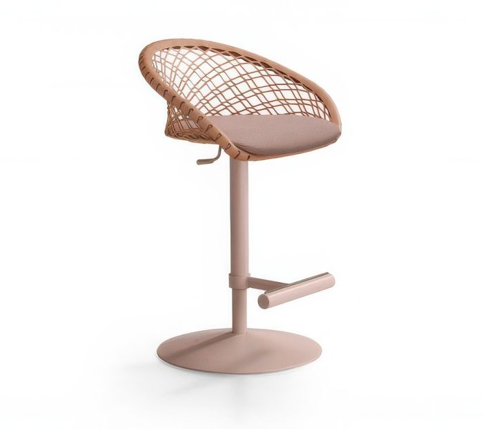 Height-adjustable P47 stool with a metal base. The backrest is crafted from TK hide or Tuscan hide, and the seat is upholstered in your choice of hide, faux leather, or fabric.