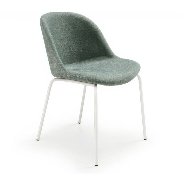 Sonny chair with a four-leg frame in lacquered or chrome metal. Seat upholstered in leather, faux leather, or fabric. Also available in a version with the backrest upholstered in a different material.